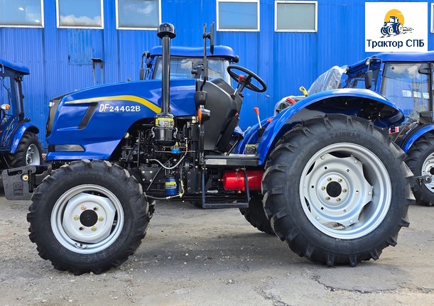 В базовой комплектации трактор Dongfeng DF-244 G2B без кабины и с реверсом синего цвета оснащается экономичным, четырехтактным, 3-х цилиндровым дизельным 24-ти сильным двигателем (ZN390Т) жидкостного охлаждения, полноприводной (4х4) механической трансмиссией (с пониженным рядом и блокировкой заднего дифференциала), счетчиком моточасов. За функционирование гидравлической системы трактора Донг Фенг ДФ-244 G2B с кабиной c реверсом отвечает гидронасос, критическим давлением 14 МПа. Дополнительно в базовую комплектацию входит: двухскоростной задний вал отбора мощности (ВОМ) 540 / 1 000 об/мин., задняя 3-х точечная навеска, задний гидравлический распределитель с рычагом управления с 4-мя коннекторами (гидровыходами). Дополнительно можно до установить: фронтальные противовесы. Удобство и комфорт управления трактором Dongfeng DF-244B G2 без кабины и с реверсом обеспечивает: практически ровный пол в зоне ног оператора; боковое расположение (справа от оператора) рычага коробки передач; реверсивное движение трактора (при помощи подрулевого рычага переключения направления движения); комфортное подпружиненное регулируемое под рост и вес оператора сиденье; гидравлический усилитель рулевого управления; классическое расположение рычагов управления ВОМ и задней 3-х точечной навески; короткоходная кулиса КПП; раздельные тормозные педали; ножной и ручной акселератор, вентилятор обдува оператора. За безопасность оператора полноприводного минитрактора Dongfeng DF-244 G2B без кабины и реверсом отвечает: рамная конструкция минитрактора, зеркала заднего вида, усиленные тормоза. В вечернее и ночное время безопасность оператора обеспечат линзованные галогеновые фары с мощным потоком света, фонари габаритных огней, задние стоп сигналы, фонарь заднего хода, фонари указателей поворотов и площадка под номерной знак с подсветкой. Надежный, экономичный, многоцелевой китайский минитрактор Донг Фенг DF-244 G2B без кабины и с реверсом станет надежным помошником в фермерском или личном подсобном хозяйстве. Он легко вспашет плугом земельный участок до 20 Га, обработает почву фрезой - 1,4 м, посадит и соберет урожай, поможет с заготовкой сена, перевезет груз в прицепе до 1,5 т., очистит территорию и дороги от снега и выполнит еще много других видов работ как в фермерском хозяйстве, личном подсобном хозяйстве так и в коммунальном хозяйстве.