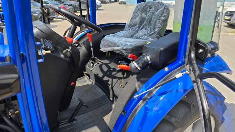 Для удобства водителя созданы все условия. Кабина оборудована системами обогрева и вентиляции. В любое время года эксплуатация трактора возможна без оговорок. Для применения в ночное время продумана система освещения. Органы управления и контрольно-измерительные приборы визуально понятны и просты в использовании. Легкий руль и удобное сиденье с регулировкой облегчает работу водителя.